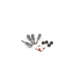 These are the same as supplied with all our fanless cases, feature an M3 thread, compression spring and thumbscrew design with H2.5 HEX Head. Includes 4 screws, 4 nuts and 2 sets of adhesive EVA pads